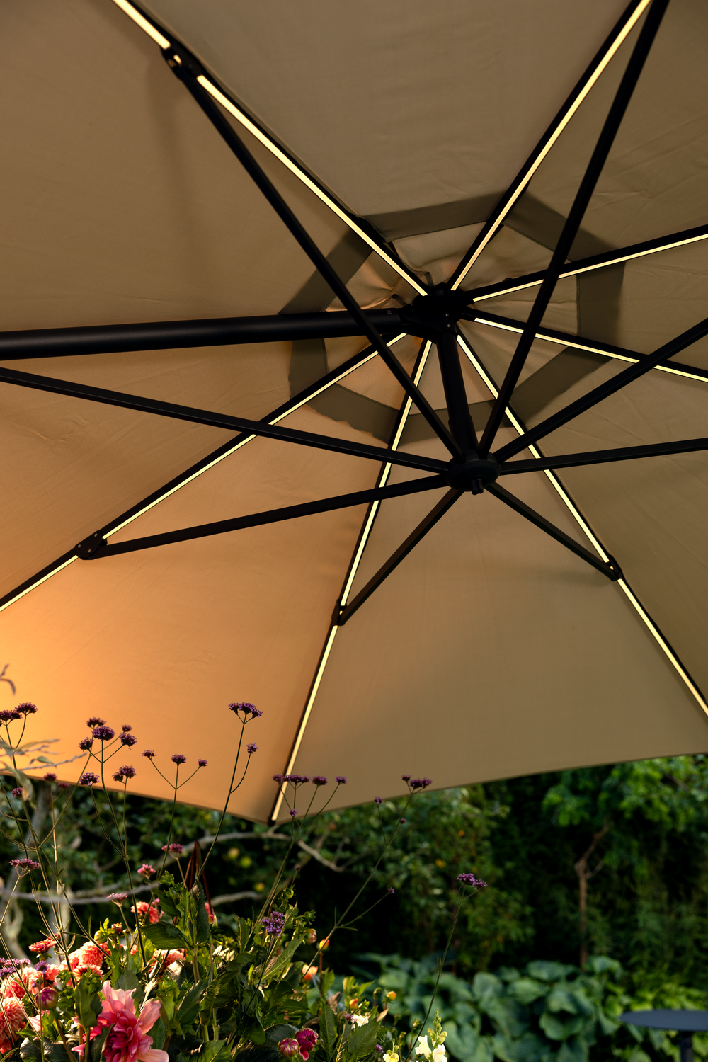 Cilento 350 cm parasoll med belysning light grey/khaki