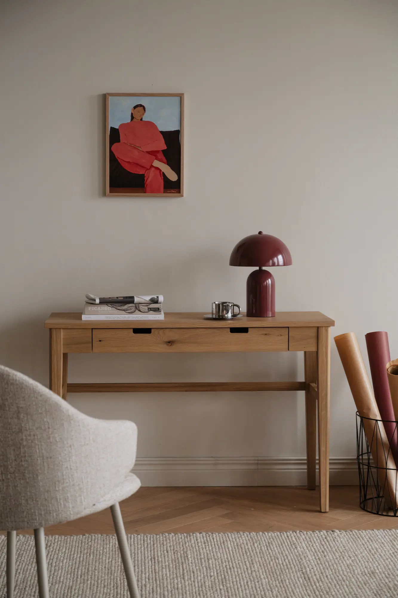 Garrison avlastningsbord i oljad ek är en mångsidig möbel som kombinerar modern design med tidlös skandinavisk elegans. De utskurna handtagen och de avsmalnande benen ger bordet ett lätt och raffinerat uttryck, samtidigt som den naturliga träkänslan tillför värme och ett harmoniskt lugn till rummet. Varje detalj är genomtänkt för att skapa en möbel som känns både praktisk och estetiskt tilltalande.