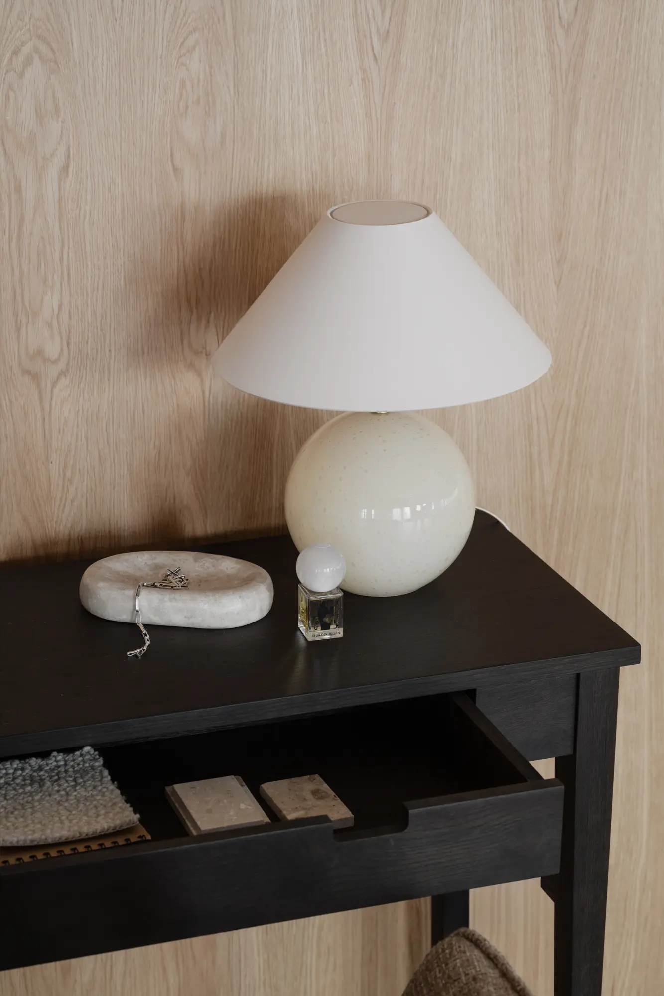 Den mjukstängande lådan bidrar till en exklusiv användarupplevelse och gör det enkelt att hålla ordning på allt från nycklar och post till skrivredskap och små kontorssaker. Tack vare sin väl avvägda höjd och funktionella design fungerar Garrison lika bra som avlastningsbord i hall eller vardagsrum som ett mindre skrivbord i hemmakontoret eller sovrummet.