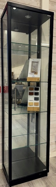Florens 1-dörrars vitrinskåp i svartbetsad ek från Mjölkalånga Träindustri. Ett svensktillverkat skåp i elegant och stilren design. Spegelglas i ryggen och vanligt glas i sidor och dörr ger en mycket fin exponering av dina kära ägodelar! LED-belysning till skåpet ingår.