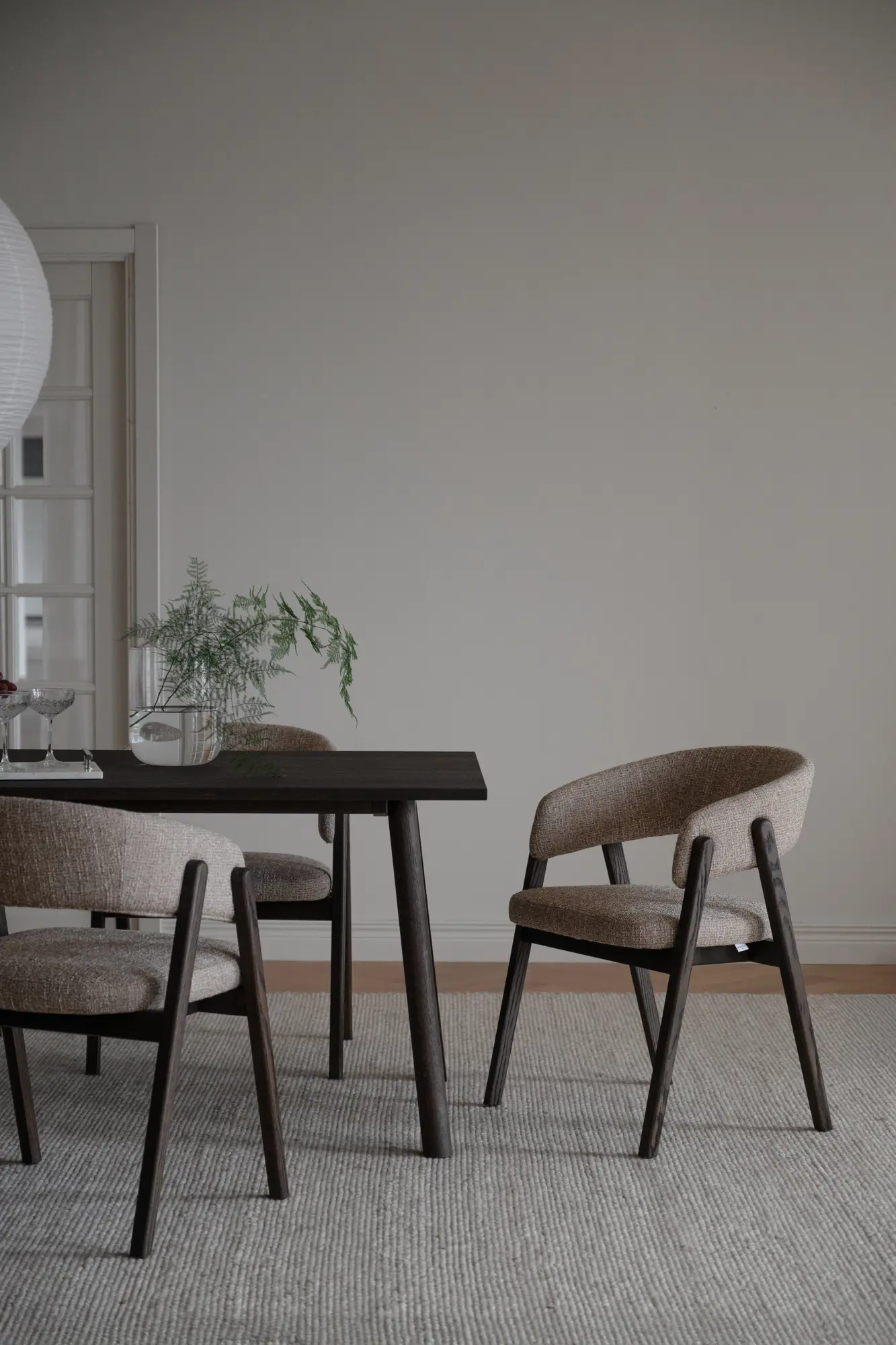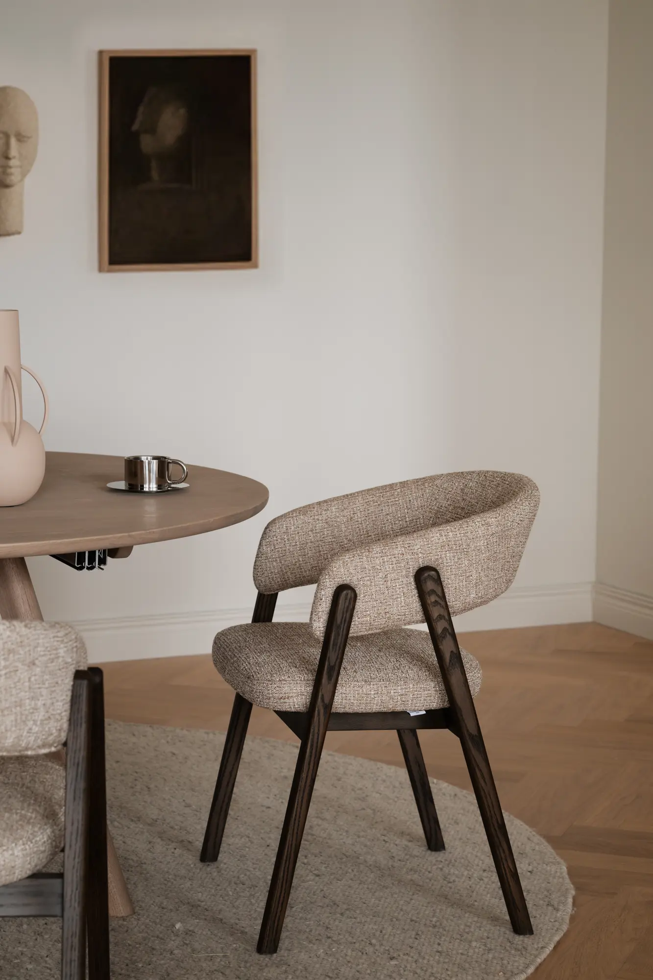 En modern klassiker med rundade former och en vackert öppen rygg som ger ett luftigt och tidlöst uttryck. Barnaby i mörkbeige textil och brun ek är en karmstol som omedelbart känns välkomnande, där varje linje är mjukt formgiven för att skapa en harmonisk helhet. Kombinationen av elegant utformade trädetaljer och den omsorgsfullt balanserade siluetten ger stolen en naturlig värme och ett uttryck som både står ut och smälter in beroende på miljö.