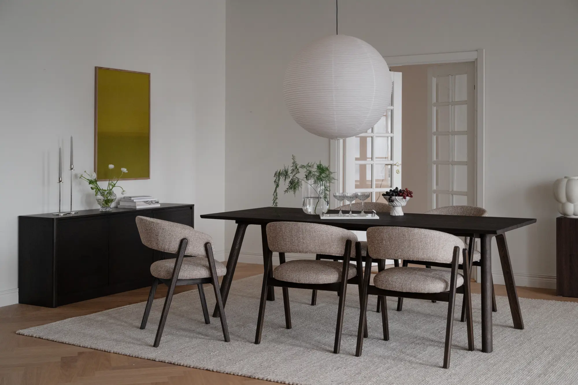 Stolen är inte bara tilltalande visuellt, den är också skapad för att sitta länge i. De rundade formerna följer kroppens naturliga konturer och ger ett behagligt stöd, medan den öppna ryggen bidrar till en lätthet som gör att rummet känns mer rymligt. Det är en design som bjuder in till långa samtal runt bordet, lika mycket som till stunder av stillhet och reflektion.