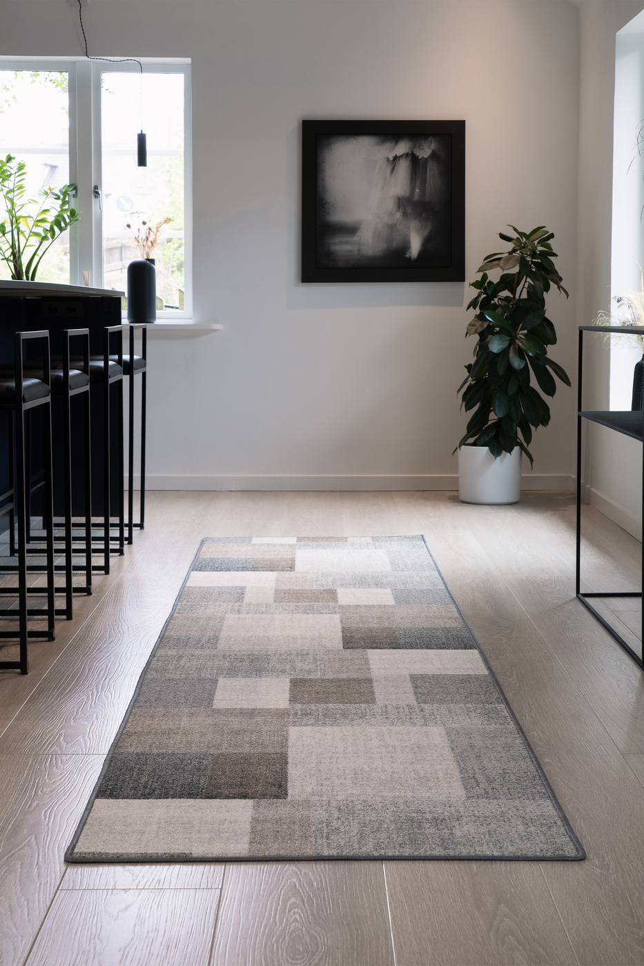Praktisk och lättskött syntetmatta med snyggt rutmönster i melerade bruna toner. Färgerna harmonierar fint med varandra och matchar snyggt med den sydda kanten. Mattan tål smuts och fukt och är mycket lätt att underhålla. Den korta öglade luggen är enkel att dammsuga och mattan går även att tvätta i maskin på 30°. Tack vare den gummerade baksidan så ligger mattan stadigt på plats på golvet utan att glida runt. Tasman har perfekta egenskaper för att bli en bra matta till hall och entre. Det har lättskötta egenskaper, är slitstark och dess trevliga design ger ett fint första intryck när man kliver innanför dörren hemma.
