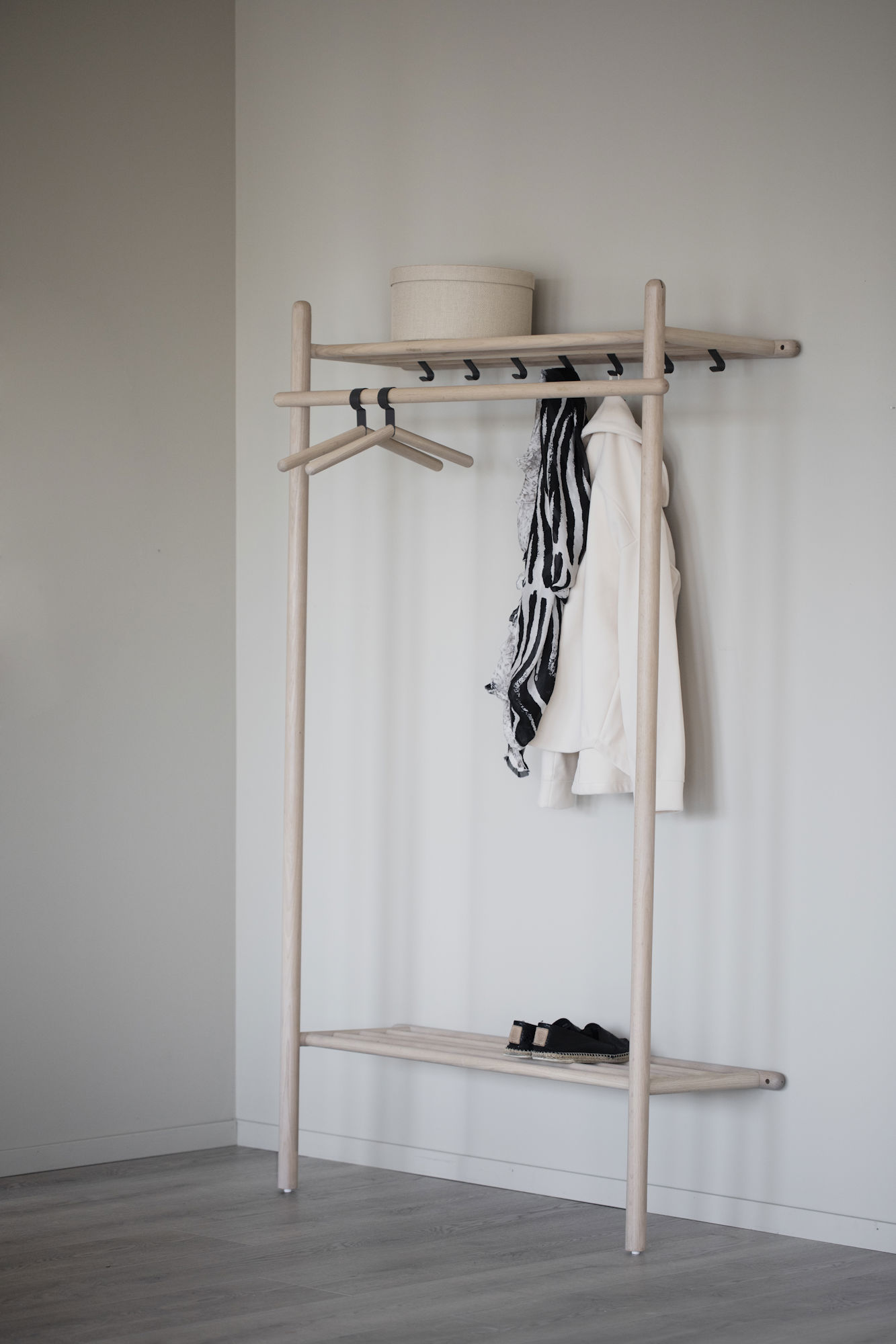 Milford galge i svarvad vitpigmenterad ek och svart metall. En stilsäker galge som passar perfekt till hatthyllan eller väggkroken i samma serie. Finns i flera fäger.