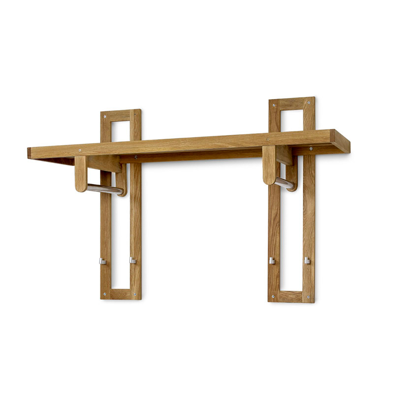 Zitti klädhylla dubbel i massiv oljad ek. En praktisk och lättplacerad klädhylla för väggmontage med stång i metall, fyra krokar samt hylla.