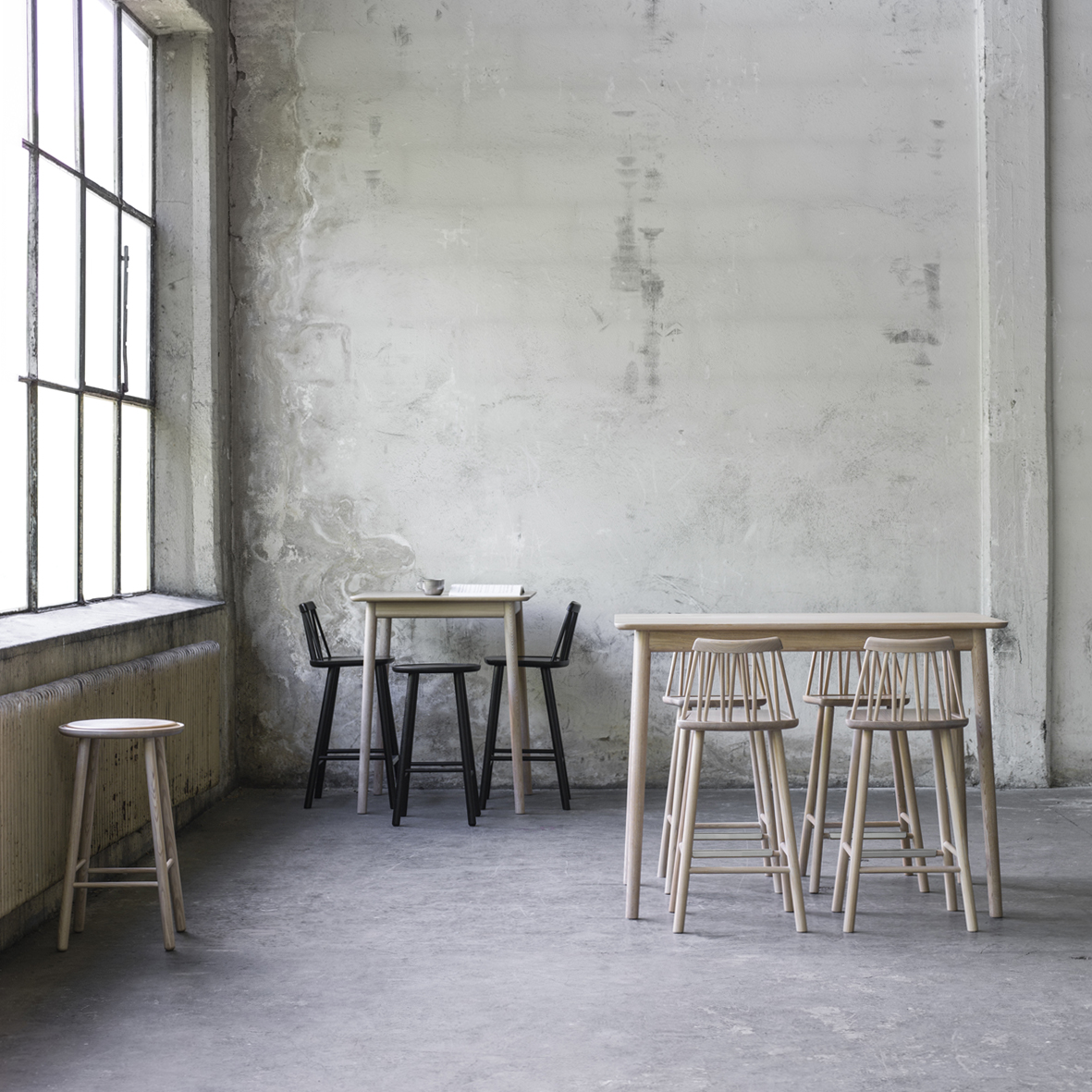 ZigZag serien erbjuder en mängd olika möbler, bland annat barstolar i två olika höjder. Stolen stilrena design gör att den enkelt kan kombineras med andra möbler och placeras i olika utrymmen. Här i massiv blondbetsad ask.