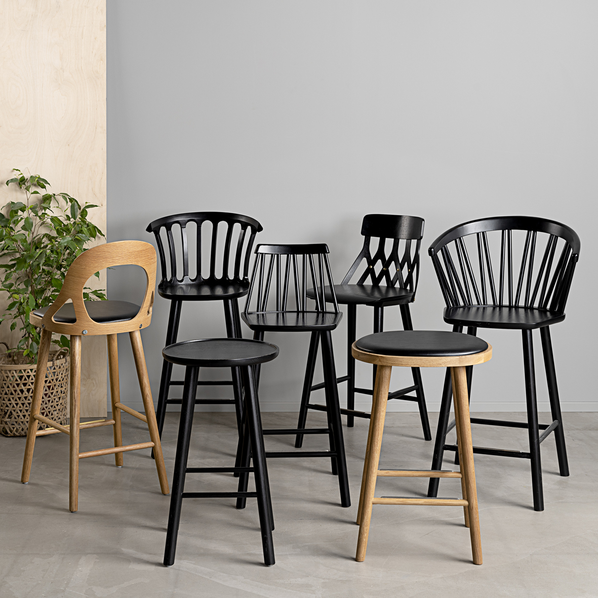 ZigZag serien erbjuder en mängd olika möbler, bland annat barstolar i två olika höjder. Stolen stilrena design gör att den enkelt kan kombineras med andra möbler och placeras i olika utrymmen. Här i massiv svartbetsad ask.