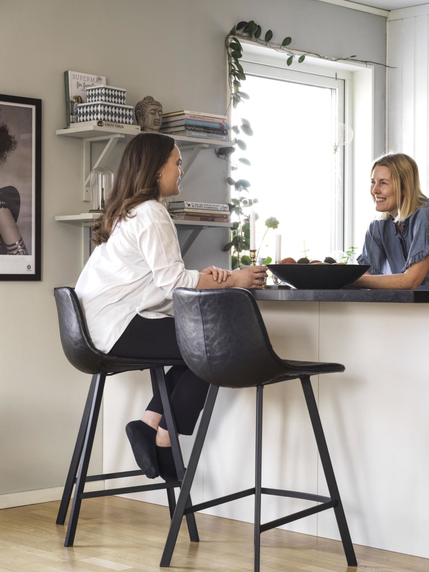 Auburn barstol med klädsel i svart konstläder och med svarta metallben. En snygg och bekväm barstol som passar perfekt vid den moderna köksön. Stolen ingår i serien Auburn och finns även i svart och som vanlig stol.