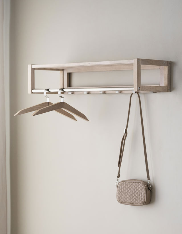 Confetti galge är i oljad ek. Klassisk och tidlös design. Galgen ingår i hallserien Confetti.