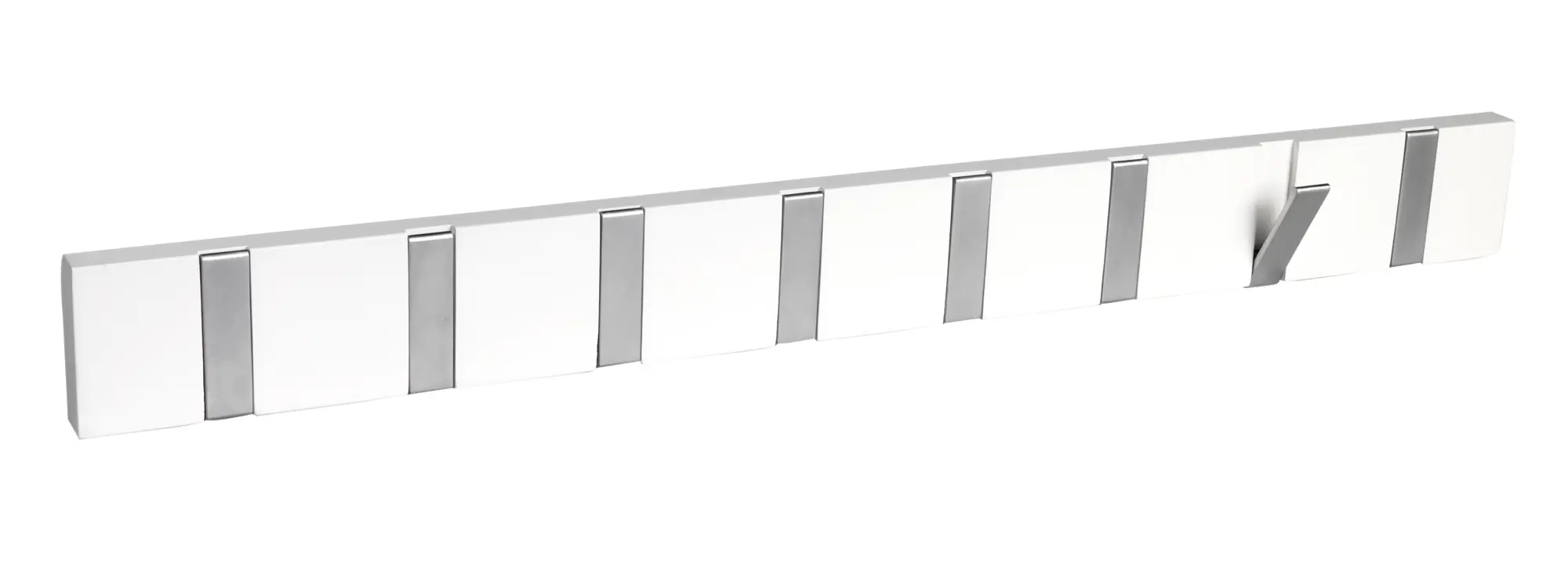 Confetti klädhängare i vitlackad MDF. Smarta utfällbara krokar i metall. Klädhängaren ingår i vår serie Confetti.