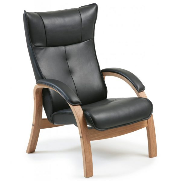 Easy är en klassisk fåtölj med stomme i massiv oljad ek, glidfunktion. Nack- och armstödskuddar i svart läder för extra komfort. Kombinera gärna med en matchande fotpall. Från Svenska Conform.