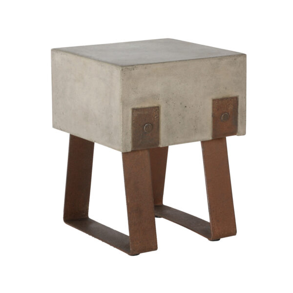Pallen Vader är i betong med ben i rostigt stål. Vader passar både inomhus och utomhus. Vid tillverkning försluts den färdiga möbeln med ett vax för att ge skydd mot fläckar.