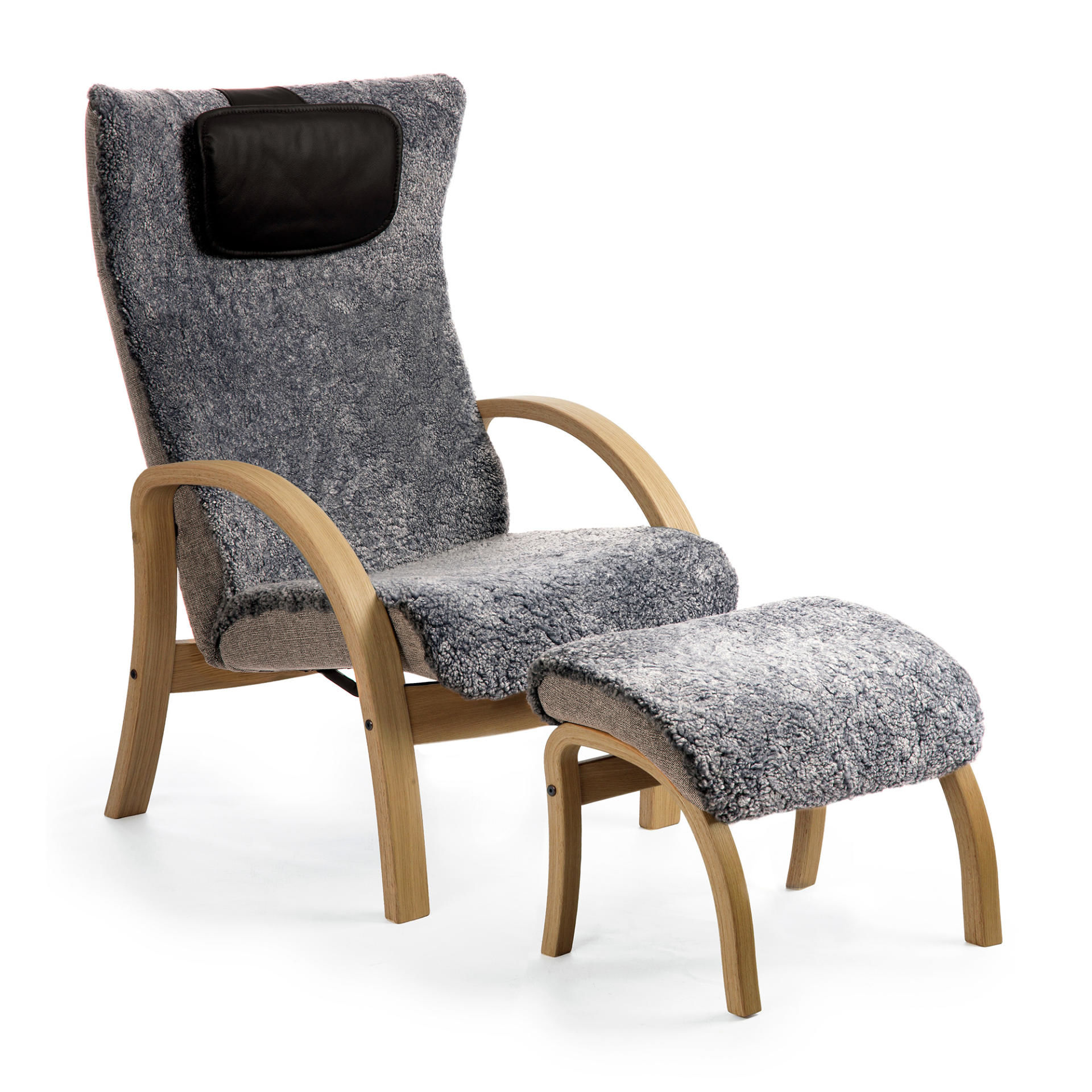 Easy fåtölj med pall vitoljad ek/fårskinn graphite